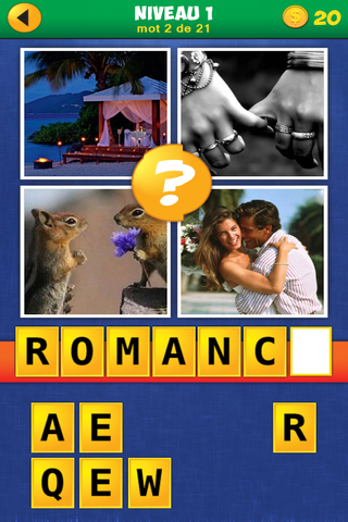 Et puis, il y a ce système d’indices qui nous aide vraiment. Comme toujours, avec suffisamment de pièces jaunes (en haut à droite de votre écran), vous pourrez au choix enlever toutes les « extra lettres » (celles dont vous n’aurez pas besoin), en dévoiler une ou bien passer au mot suivant, gratuitement. Sachez toutefois que pour débloquer les niveaux suivants vous devrez tous les mots du niveau précédent (à part au début où on vous fait une fleur en vous permettant d’avancer à partir du 16 ou 17e je crois). Sachez aussi que si vous n’avez plus de pièces jaunes, vous devrez payer pour obtenir des indices supplémentaires (et c’est là que notre lien vers la solution du jeu 4 Images 1 Mot Rechargé devient intéressant). Notez aussi que si vous parvenez à découvrir le mot sans dévoiler aucune des 3 autres images, alors vous prendrez deux pièces supplémentaires par images non découvertes.