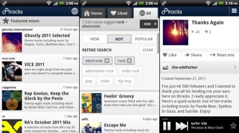 Avec 8tracks sur Android, vous pourrez faire deux choses: écouter un mix ou bien créer votre propre mix. Les auditeurs peuvent rechercher des mix par artiste ou par genre, les diffuser dans un certain cadre, les ajouter aux favoris et s’abonner aux éditeurs de ces listes de lecture. Les membres inscrits peuvent créer leur propre liste de lecture avec un minimum de huit morceaux musicaux par liste. Ils peuvent puiser dans les bases de données de Soundcloud ou de Last.fm ou bien importer leurs morceaux à partir de leur ordinateur.