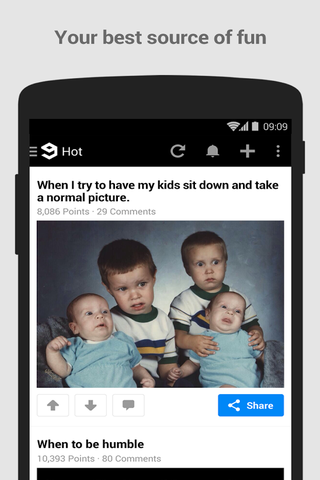 C’est le minimum syndicale mais c’est très bien fait. Pas de fioritures pour l’application 9gag, mais un fonctionnement simple, intuitif, immédiatement accessible et facile d’utilisation. Les vidéos, les images, les photos, les bandes dessinées, tout est classé. Vous n’aurez donc aucune peine à retrouver les meilleures d’entre elles depuis l’application. Notez que vous pourrez également partager toute cette base de données conséquente sur les meilleurs réseaux sociaux.