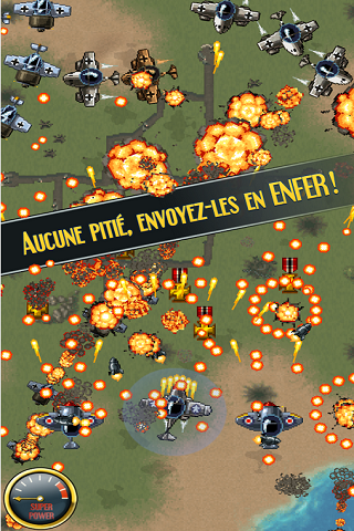 De même, dans Aces of the Luftwaffe (comme dans tous les shoot them up) votre tir progressera.Vous devrez simplement veiller à tirer sur les bons avions: ne vous inquiétez pas, ils sont facilement repérables. Les avions bonus sont entourés d’un cercle rouge et une fois détruits ils lâcheront un bonus pour upgrader votre arsenal. Une dernière chose pour finir: en bas à gauche se trouve le bouton de super pouvoir, à déclencher avec modération, ils sont en nombre limité. Aces of the Luftwaffe est donc un excellent jeu gratuit sur Android. Si vous aimez le genre foncez, vous ne le regretterez pas, il s’agit d’un titre vraiment réussi.
