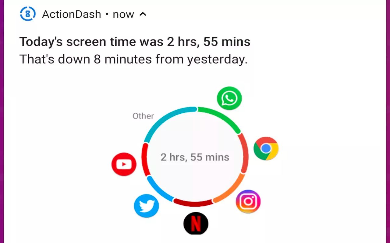 Avec ActionDash vous saurez précisément combien de temps vous passez sur votre téléphone (ou votre tablette). C’est franchement absolument nécessaire. On passe tous trop de temps sur les réseaux sociaux, ou sur Youtube etc. Quand vous verrez les statistiques vous aurez sans doute du mal à y croire.