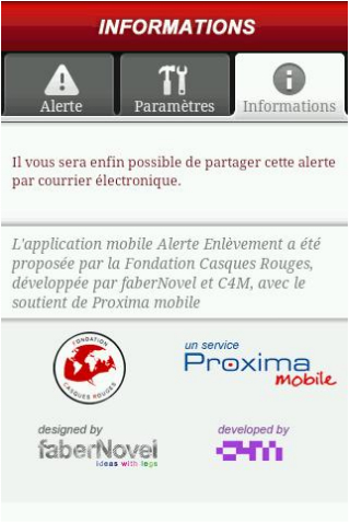 Alerte Enlèvement est une application créée par la Fondation Casques Rouges afin de permettre au ministère de la justice d’informer massivement la population en cas d’enlèvement d’enfant avéré.