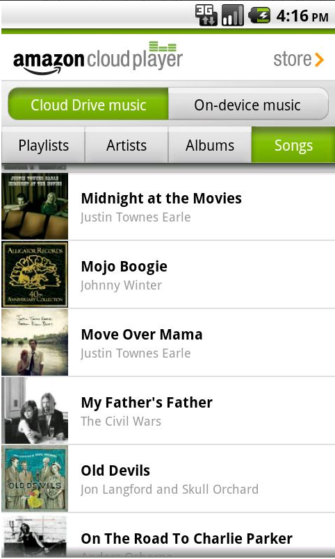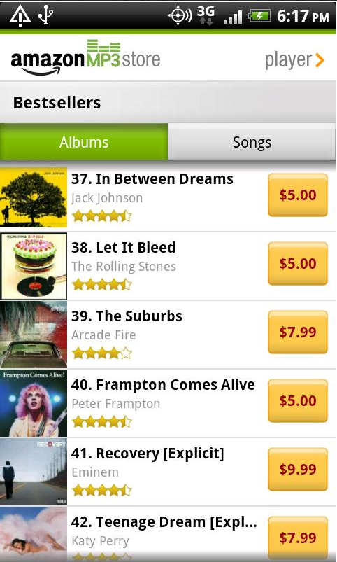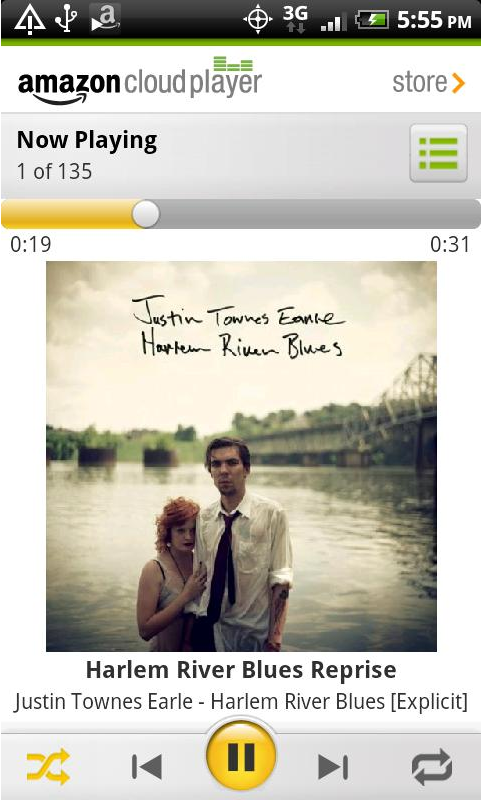L’application Amazon MP3 pour Android comprend non seulement la boutique Amazon MP3 mais aussi un lecteur pour écouter la musique enregistrée sur votre appareil.