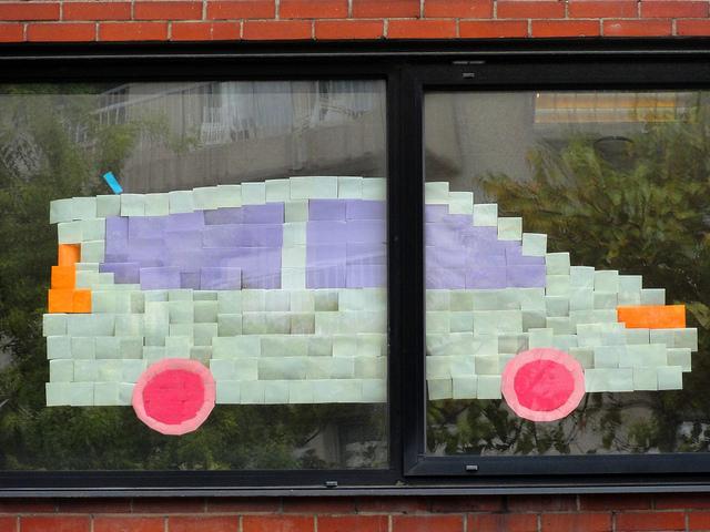 Ah l’été, tout le monde (ou presque) est en vacances et quand on est salarié d’une grande entreprise, les minutes, les heures, les jours, les semaines sont très souvent bien longs. C’est alors qu’intervient le Post-It. Pourquoi ? Comment ? Deux sociétés basées à Montreuil sous Bois ont en effet eu l’idée de s’affronter à coup de ces petits bouts de papier, non pas en en faisant des avions ou des boulettes, mais tout simplement en les collant sur les vitres des sociétés pour former des personnages visibles depuis l’extérieur.