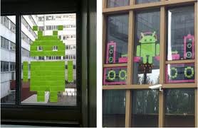 Mais si AndroidZone vous parle de cette guerre de papier, c’est surtout parce que notre petit bonhomme vert a également eu droit à sa version post-it au milieu de personnages ultra célèbres, tel que Pac Man, Mario, Bowser etc. C’est pas beau ça ? Vous savez ce qu’il vous reste à faire si vous vous ennuyez au bureau et que vos vitres sont toujours vierges …
