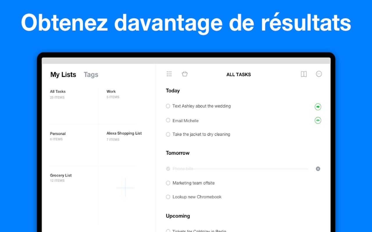 Une fois une nouvelle liste réalisée, vous allez ensuite pouvoir les trier selon le type de listes réalisées. Ces dernières se trouvent dans « Mes Listes » et contiennent chacun d’entre elle avec les tâches qui lui sont attribuées. Donc si vous supprimer une liste, vous supprimez aussi les tâches qui lui sont liées.