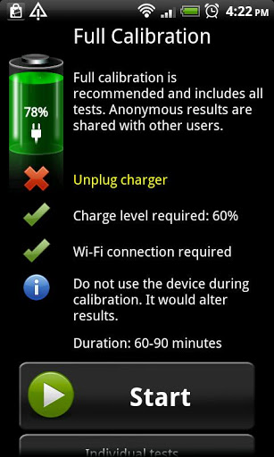 Avant de pouvoir l’utiliser complètement, vous allez néanmoins devoir passer par une phase de calibration afin que Batterie HD reconnaisse entièrement votre batterie et son état. Ne vous inquiétez pas, tout est automatique, ça se fait tout seul sans votre intervention.