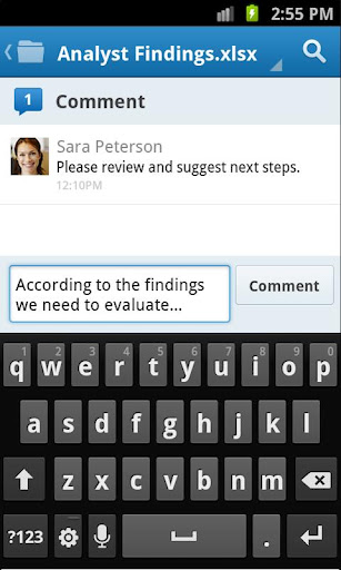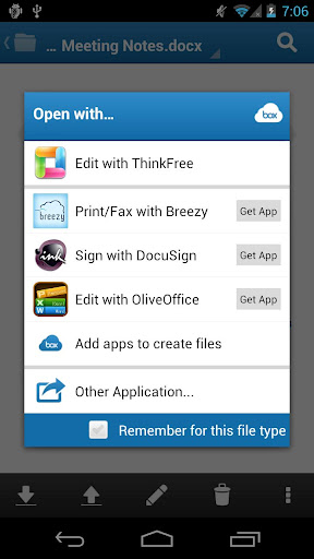 - d’enregistrer des fichiers que vous avez modifiés ou créés à partir d’autres applications Android, dans votre compte Box