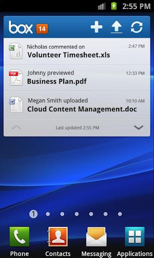 Très utile, un Widget vient se positionner sur votre bureau afin de vous alerter d’une modification effectuée sur un fichier que vous avez partagé. Plus de 7 millions d’utilisateurs, dont 82 % des sociétés du classement FORTUNE 500, font confiance à Box pour le partage simple et sécurisé de leurs contenus. Des sociétés telles que Pandora, TaylorMade, Clear Channel et Six Flags se dotent ainsi d’équipes collaboratives et mobiles et comprennent les avantages de la solution mobile Box, qui permet à une entreprise type d’économiser plus de 3 000 heures par mois.