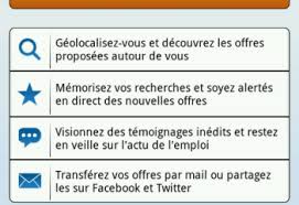 Depuis votre smartphone, soyez alerté des dernières offres et déposez votre candidature. Cette application gratuite vous permet de sauvegarder les offres sur votre compte et d’être informé de l’actualité du marché de l’emploi.