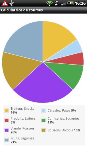 Il vous sera également possible d’appliquer des réductions s’il y en a (réduction fixe ou en pourcentage) et de personnaliser les produits listés. Vos anciennes listes seront automatiquement archivées et datées. Vous garderez donc une trace pour chacune de vos listes. Un graphique est également disponible pour consulter de façon visuelle la répartition de vos achats.