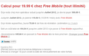Nous prendrons pour notre exemple, un forfait initial de 24 mois, se terminant en juillet 2012, à 50 € par mois que nous voudrions changer pour un forfait FreeMobile à 19,99 €.