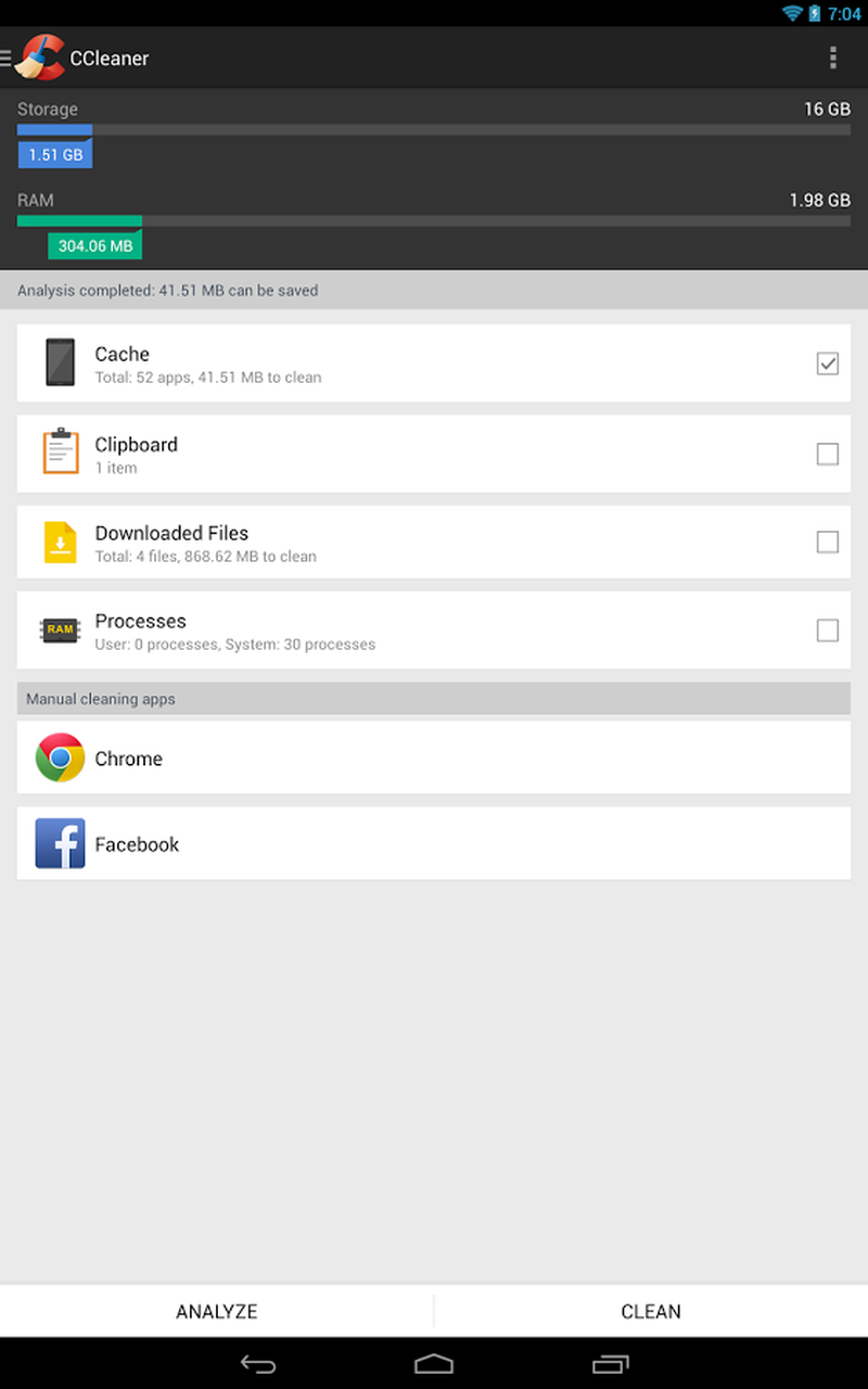Première constatation CCleaner est une application très légère et très compact. Ce n’est pas elle qui va occuper toute la place de votre smartphone ou bien votre tablette Android. Deuxième constatation: elle est peu gourmande en ressource et propose des fonctionnalités vraiment basiques. Là où la référence en matière de nettoyage et d’optimisation de vos fichiers et de la mémoire sur Android, Clean Master, commence à se perdre en proposant une foule de fonctionnalités pas toujours très claires et pas toujours très utiles. Non, CCleaner vous permettra juste de faire de la place sur votre Android en supprimant les fichiers inutiles.