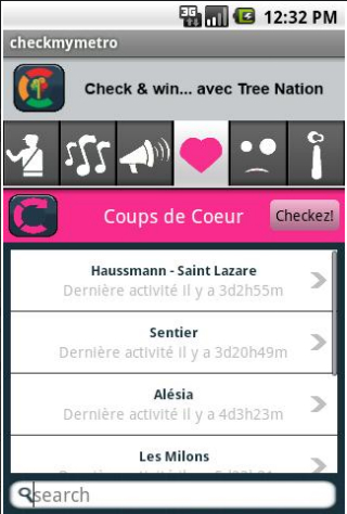Utile, l’application vous permet d’avoir accès à la carte du métro, à vos prochains horaires de métro ou aux dernières news en France pour votre trajet. Mais surtout, CheckMyMetro fait du Métro un véritable terrain de jeu et d’échange. CheckMyMetro est à la fois, sociale, ergonomique et pratique! Sociale car elle permet aux utilisateurs de poster leurs checks automatiquement sur Twitter ou Facebook et de suivre et commenter l’activité de leurs voyageurs favoris et amis. Ergonomique car l’interface est beaucoup plus claire et intuitive. Enfin pratique, car elle donne accès à la carte du réseau, à l’actualité grâce à la rubrique CheckMyInfos, aux horaires des prochains métros ou même au blog de Marie Dinkle, l’inconnu du métro.