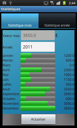 - Statistiques : Suivi mensuel et annuel du chiffre d’affaire ou recettes