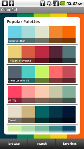Color Pal va vous proposer de naviguer au sein d’un nombre conséquent de palettes de couleurs. Tout y est, vraiment. elles pourront être triées par popularité, nouveauté, nom etc. Bien entendu vous pourrez enregistrer vos choix préférer afin de les retrouver facilement dans votre magasin de bricolage le plus proche.