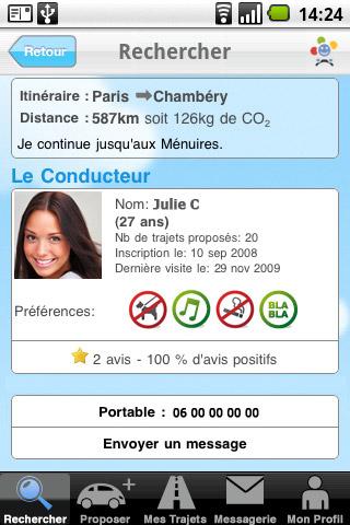 La fonction Clic-to-call permet de joindre directement vos correspondants et vous pourrez également envoyer des messages via la messagerie, à destination du conducteur, mais aussi des personnes partageant ou ayant déjà partagé avec vous un voyage.