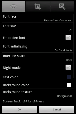 Pas de bugs intempestifs ni de freeze quand vous lisez le meilleur passage du Père Goriot de Balzac (!). Vous récupérez un eBook archivé en .zip, pas de soucis, Cool Reader s’occupe de l’extraction et de l’affichage. Il est bien entendu pourvu d’un dictionnaire intégré et peut vous « lire » vos livres grâce à l’option « text speech ». Oui oui, Cool Reader n’est pas loin d’être une référence. En plus il est gratuit et tourne sous Android 1.5 au moins.