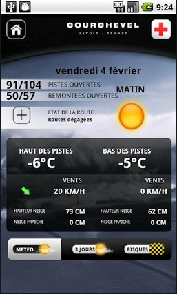 Vous pourrez connaître à tout moment votre position GPS sur les pistes et consulter les prévisions météo détaillées de la station.Un annuaire de services disponibles est également proposé ainsi que les numéros des secours, indispensable en cas d’accident.