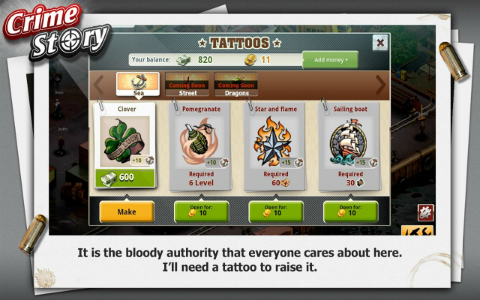 L’histoire commence mal, votre frère vient d’être enlevé. Le jeu Crime Story (noté 4,8/5 par 57 000 utilisateurs, c’est peu dire !) va vous emmener vers une constante quête de pouvoir et de domination. Issu d’un milieu mafieux, vous ne pouvez pas laissez l’honneur de votre famille ainsi sali. Vous partez donc pour le délivrer et gare à celui ou celle qui barrera votre chemin, il se pourrait que les colts crachent en tous sens !