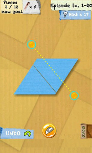 Il vous sera proposé toutes sortes de formes. Vous devez jauger chacune d’elle pour savoir où donner un coup de cutter, ici votre doigt sur l’écran, afin d’en faire 2 morceaux égaux. Franchement, si vous y arrivez à chaque fois, donnez nous le truc, car faire 50/50 relève du défi presque impossible à battre sauf avec beaucoup de chance.