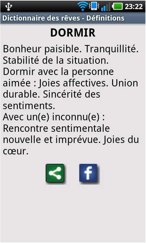 Cette application vous propose un dictionnaires des rêves qui vous permettra de décrypter vos rêves. Ce sont plus de 3200 mots et définitions qui vous sont proposées afin de vous aider à comprendre vos rêves.