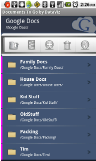 • Télécharger, afficher et modifier vos fichiers depuis Google Docs vers Docs To Go.