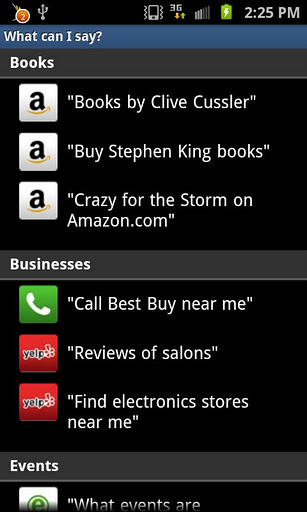 Elle pourra également exécuter toutes sortes de demandes vocales: réserver un restaurant, passer un appel, envoyer un sms etc. Bref Dragon Go est un clone finalement assez réussi de Siri, d’autant plus que l’application propose un petit tutoriel complet pour l’apprivoiser. Vous apprendrez ainsi à vous en servir en sachant ce que vous pouvez ou ne pouvez pas dire, ce qui est pris en charge et ce qui ne l’est pas.