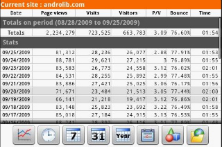 DroidAnalytics a été développé pour vous donner un moyen rapide et intuitif de visualiser vos données issues de Google Analytics. Vous serez en mesure de voir vos statistiques quotidienne, hebdomadaire, mensuel et annuel pour vos pages vues, visites, taux de rebond, etc.