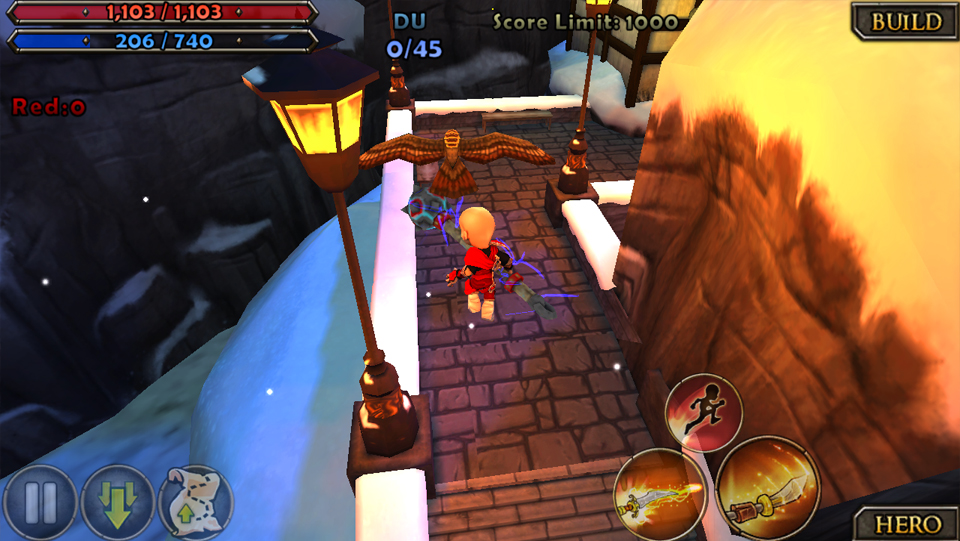 Quel que soit votre choix toutes les parties débutent de la même manière: vous devez protéger un cristal contre des hordes d’ennemis tout droit sortis de l’univers d’Héroic Fantasy: orcs, squelettes et autres ogres affamés. Ceux-ci se divisent en plusieurs vagues successives de plus en plus meurtrières. Pour organiser votre défense une seule option: récupérer tous les cristaux que vos ennemis laissent derrière eux, ils vous serviront à acheter des défenses ou à les upgrader notamment. Une fois que toute votre défense est en place, vous pouvez lancer le combat. Une grosse différence avec les autres jeux de Tower Defense (présentés ici sur Android-Zone): vous devrez participer aux combats avec votre personnage. Celui-ci dispose donc d’attaques variées et pourra être équipé avec des armes plus puissantes. Vous pourrez également augmenter sa vitesse ou sa force par exemple, bref la dimension RPG, très présente et bien réalisée, apporte indénaiblement un autre vrai plus à ce Dungeon Defenders.