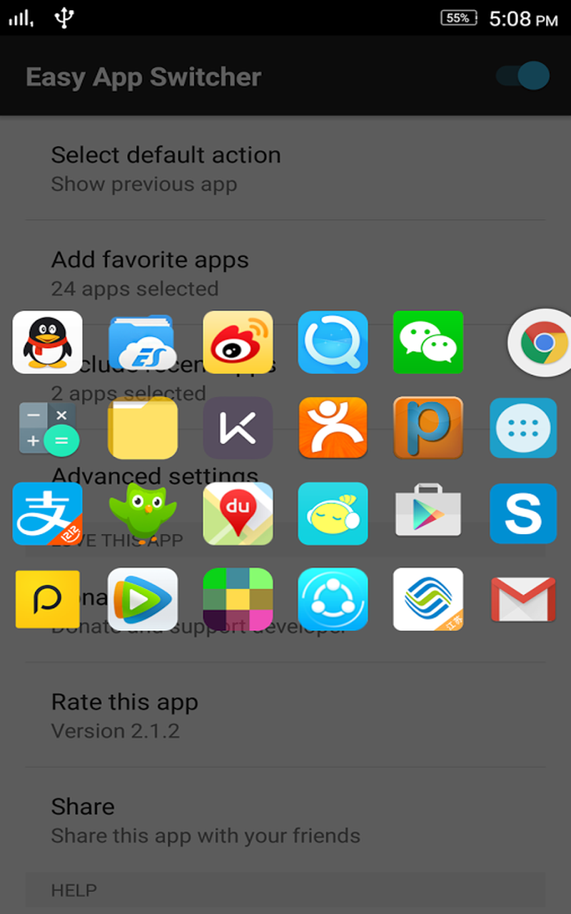 Configuration requise pour utiliser Easy App Switcher sur Android: Android 4.0 au moins.