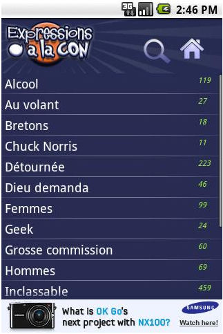 Un Widget est également disponible, il affichera une expression au hasard sur votre bureau. Vous pourrez aussi noter et partager vos expressions préférées par SMS.