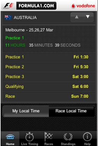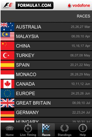 Formula1 2011 est une application gratuite dédiée à la formule 1. Le site de référence ici est formula1.com et l’application et le site ne sont pas disponibles en français.