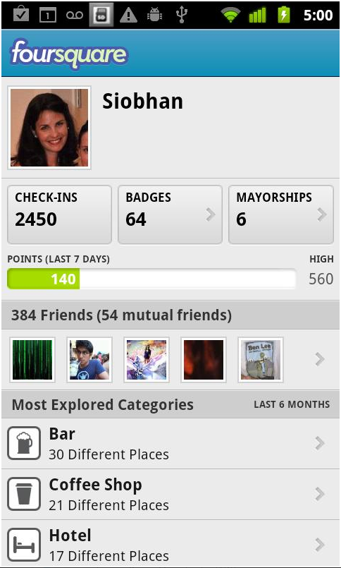 Vous pouvez ainsi découvrir les bons plans de chacun, une sorte de Nomao mélangé à un Facebook en somme. D’ailleurs, pour retrouver vos amis, vous pourrez passer par Facebook et Twitter sur le web, mais l’application vous permettra, elle, de rechercher des contacts utilisant foursquare grâce à votre carnet d’adresse, ou vos contacts téléphoniques, puisque votre numéro est demandé lors de votre inscription.