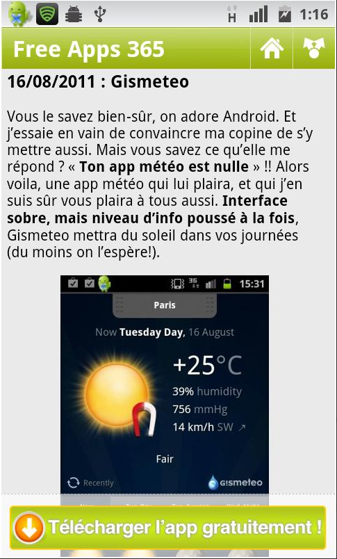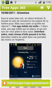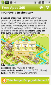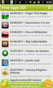 L’application FreeApps365 vous propose tous les jours une application Android gratuite. Vous pouvez télécharger leur application ou consulter la liste disponible sur leur site. Un moyen simple pour économiser de l’argent.
