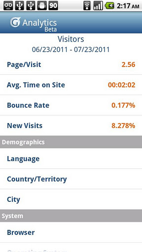 Google Analytics est un outil bien connu des créateurs de site internet. A l’aide d’un petit script inséré dans votre site, vous allez pouvoir accéder à un certain nombre de données concernant le trafic des visiteurs et leur comportement sur votre site. gAnalytics vous permet d’y avoir accès directement depuis votre Android.
