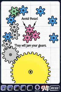 Le but de ce jeu Geared est d’arriver à placer des roues dentées afin que tous les engrenages se retrouvent en rotation. Simple au début, mais rapidement très « casse-tête » !