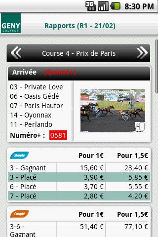 Vous connaîtrez les dernières informations avant chaque course, les statistiques des partants, les cotes PMU ainsi que leur évolution. Où que vous vous trouviez, vous aurez également accès aux photos d’arrivée des chevaux et pourrez visionner les vidéos concernant les émissions Quinté Net et les interviews. Un clic sur une course vous dirigera vers une grille détaillée, il ne vous restera plus qu’à parier sur le 6 gagnant dans la cinquième!!