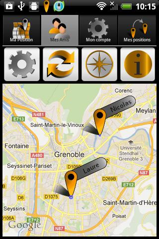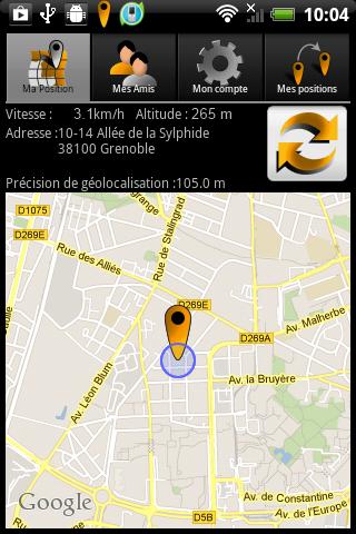 La localisation est réactualisée par défaut toutes les minutes (l’application tourne en tâche de fond, vous pouvez donc continuer d’utiliser votre portable ou le mettre en veille). Il est possible de modifier cette valeure dans les options de l’application. Il est également possible dans les options de d’activer la géolocalisation internet (wifi ou 3G) lorsque la géolocalisation GPS n’est pas possible