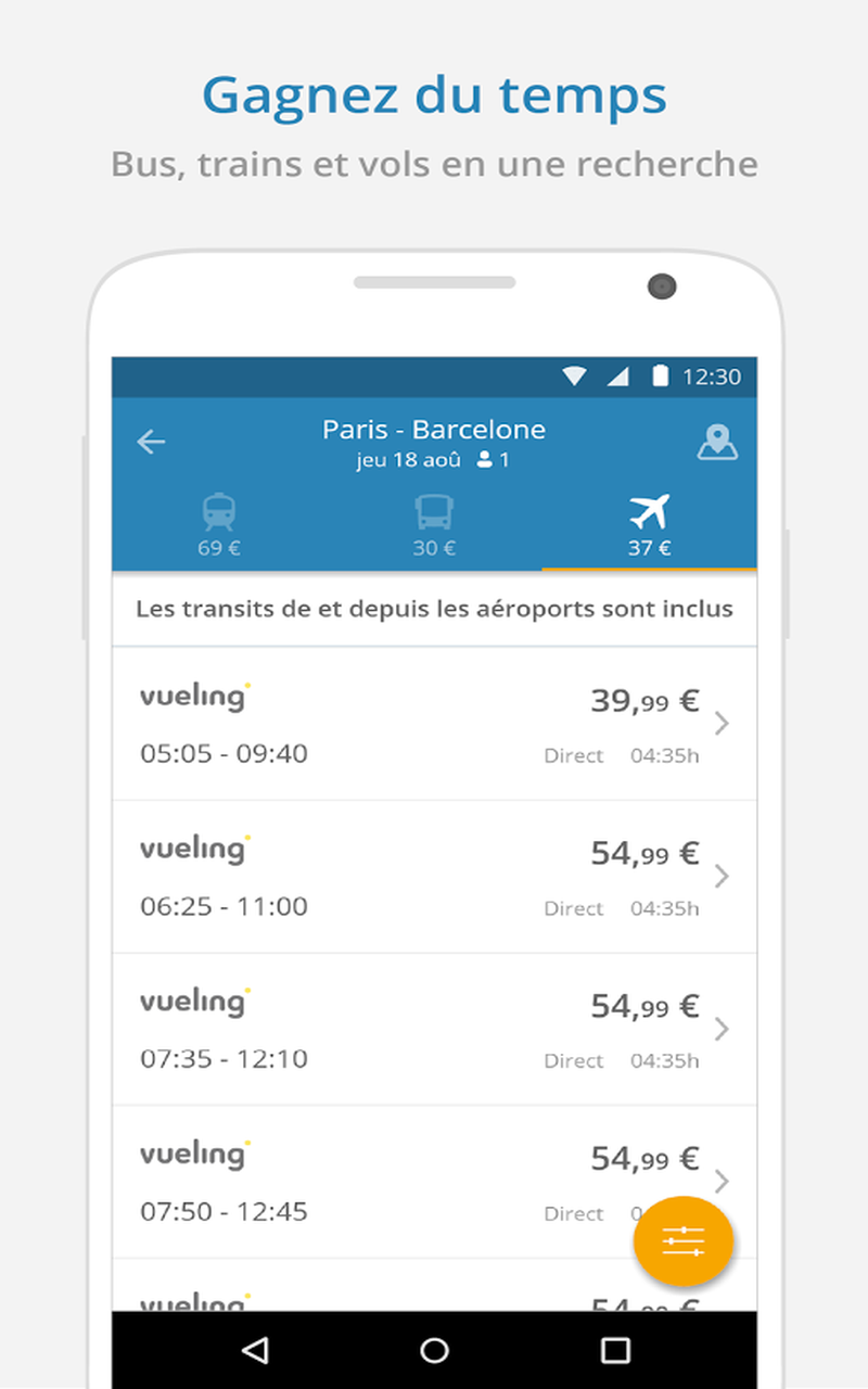 Configuration requise pour utiliser GoEuro sur Android: Android 4.0.3 au moins.