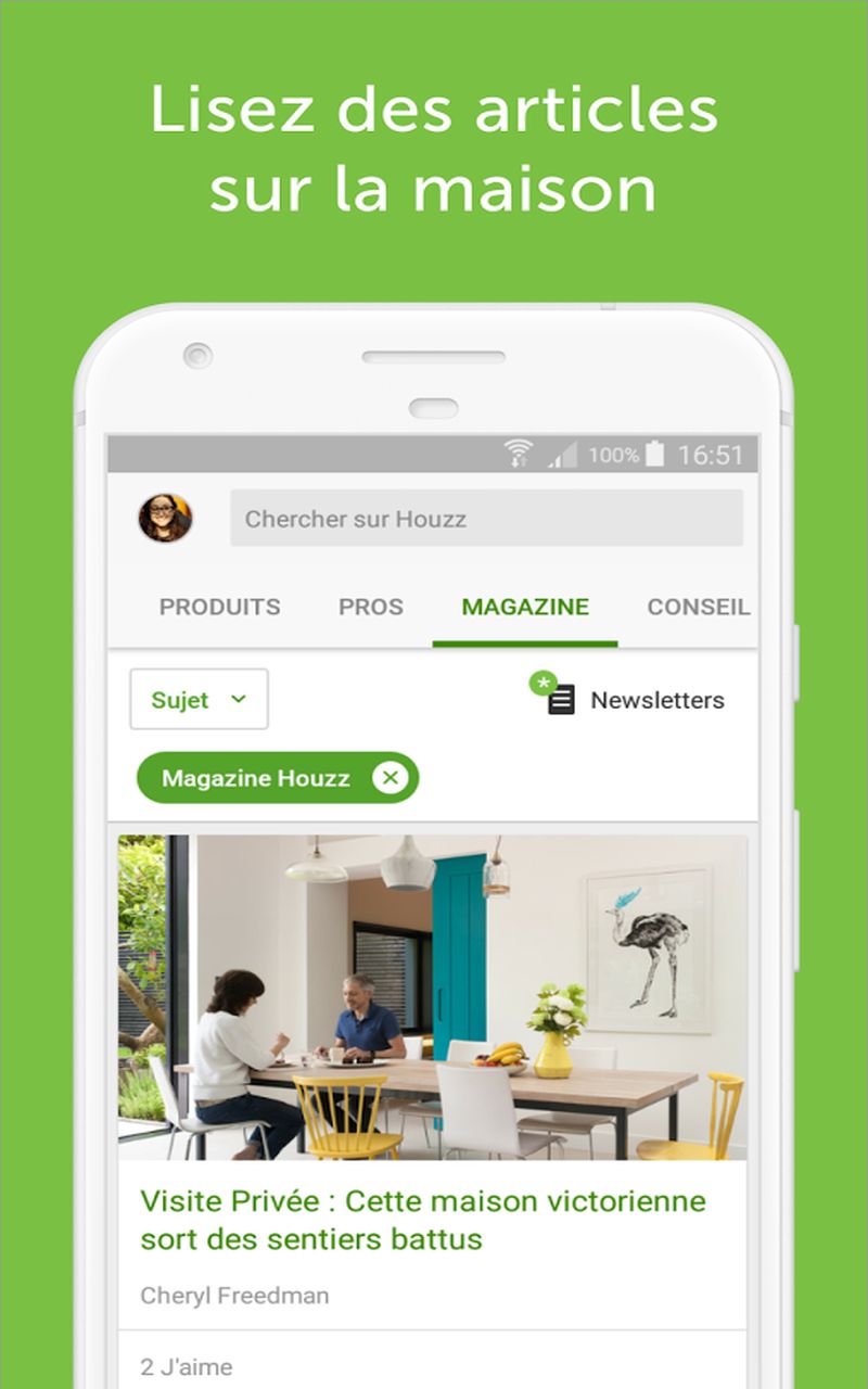 Plusieurs onglets alimentent Houzz: la découverte de produits, les adresses de vendeurs professionnels autour de vous, un magazine de décoration avec des articles de fond et enfin une rubrique « conseils » pour les remarques et les échanges entre les différents utilisateurs. Vous avez dit complet ? C’est le moins que l’on puisse dire avec Houzz !