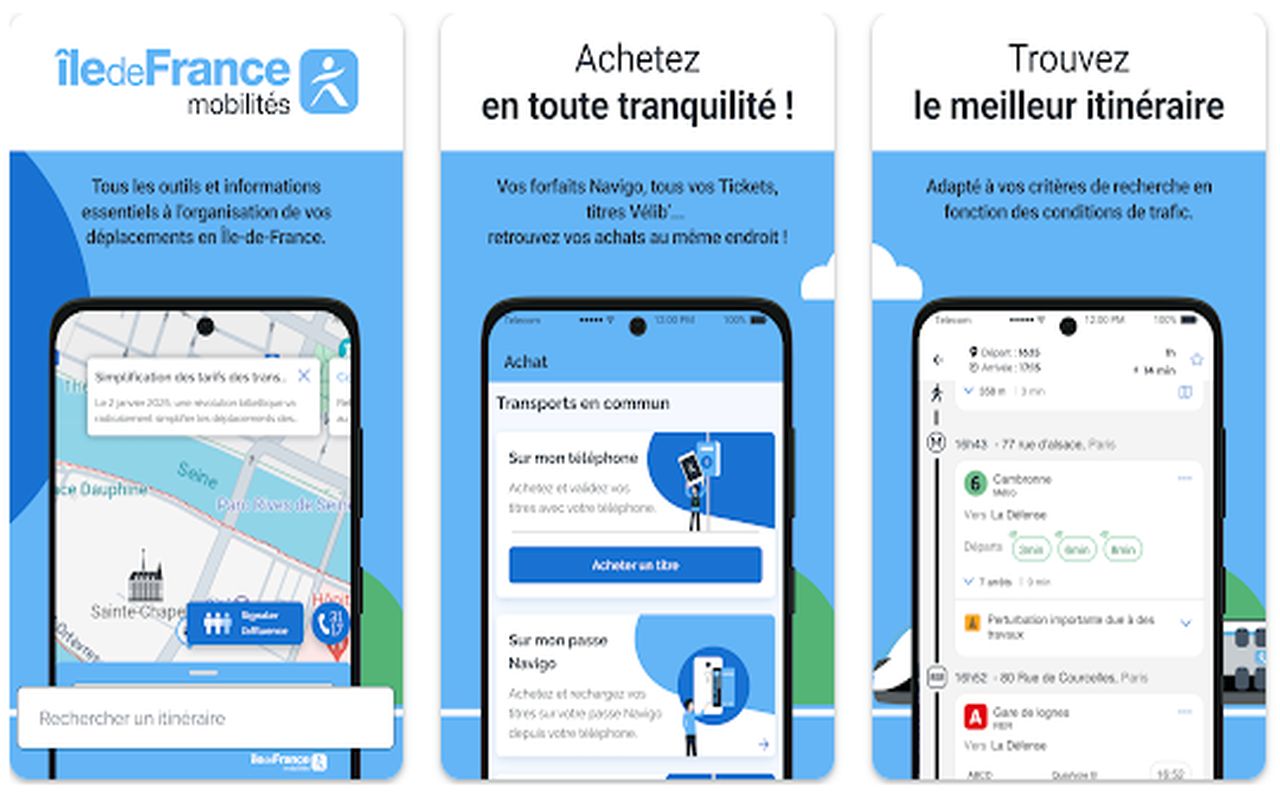 Claire, ergonomique et complète, Île-de-France Mobilités est la meilleure alliée des usagers pour gérer leurs voyages en Île-de-France sans perdre de temps. Elle offre un suivi précis, des trajets optimisés et une compatibilité totale avec les titres de transport dématérialisés. En quelques clics, vous planifiez, payez et validez vos trajets, le tout depuis une seule interface. C’est un outil moderne, pratique et adapté à la vie quotidienne francilienne. Si vous prenez les transports régulièrement, cette application est tout simplement incontournable pour voyager malin dans toute la région.