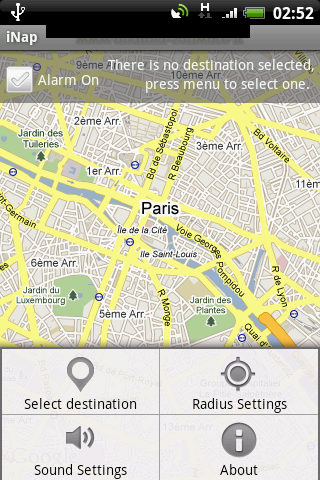 Comment ça se passe, qu’est-ce que c’est ? iNap, c’est tout simplement une application indispensable pour tous ceux qui désirent voyager sereinement, sans se ronger les ongles en se disant qu’il est possible, voir très probable qu’au vu de leur état de fatigue, ils loupent leur arrêt de train ou de bus par exemple. Concrètement, celle-ci repère votre position GPS et une fois que vous avez saisi une destination sur une carte, vous la laissez faire le reste. Son rôle: vous réveiller non pas à une heure précise, mais à un lieu précis, à une distance de votre destination que vous aurez définie. Pratique non ?