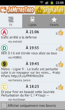 JaMétrotard est une application communautaire qui vous permet de connaitre l’info trafic, en temps réel, sur le réseau RATP et les transports en commun d’île-de-France (SNCF). Vous pourrez juger l’état de santé de votre ligne par l’absence ou l’abondance de messages et grâce aux commentaires et confirmation des usagers, vous pourrez suivre l’évolution des perturbations.