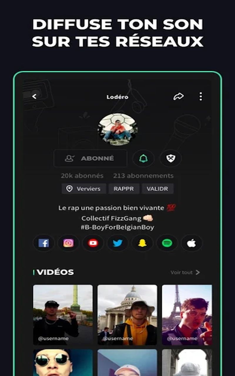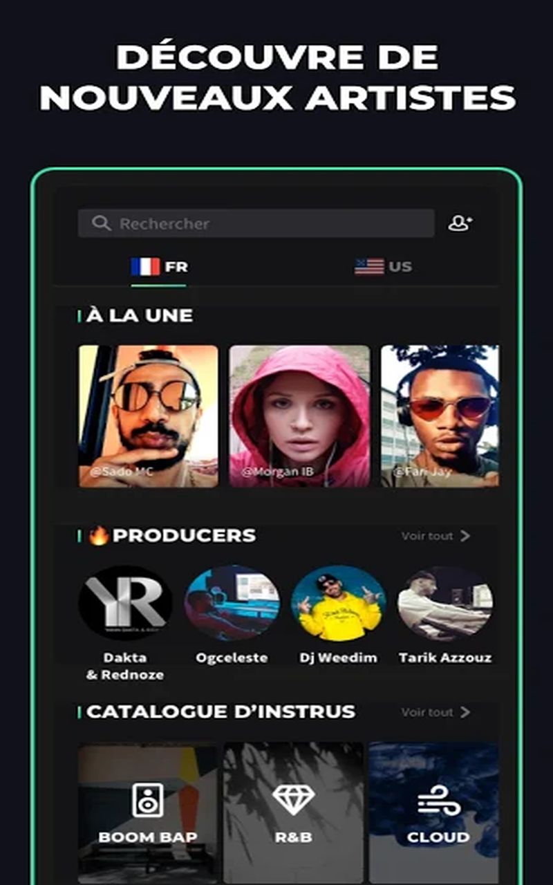 Vous accéderez donc à une bibliothèque complète de producteurs, comprenez de beatmakers, mais aussi à des jeunes artistes qui font leur début en posant sur un son; ou plusieurs et qui complète leur profil au fur et à mesure.