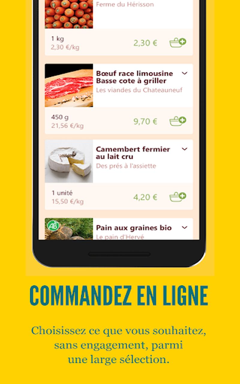 Bonjour à tous et bienvenue sur nos pages pour y découvrir sans plus attendre la présentation de l’application La Ruche qui dit oui sur Android. Proposée par le service du même et adaptée sur mobile, c’est un moyen d’acheter de la nourriture locale à des prix intéressants, mais toujours plus élevés que ce que vous trouvez en magasin classique. Elle vous propose en effet de trouver des produits de saison, savoureux, et en partenariat avec des producteurs locaux. Ce sont ces derniers qui fixent les prix et récupèrent 80% du prix qu’ils ont fixé. On est ici sur du circuit court qui privilégie la relation producteur consommateur avec un intermédiaire qui fait son travail!: celui de n’être qu’un intermédiaire, facilitant cette relation et ne prenant pas la place des magasins qui dupent à la fois le producteur mais aussi le consommateur en prenant des marges affolantes. Pardon, c’était mon moment « dénonciation ».