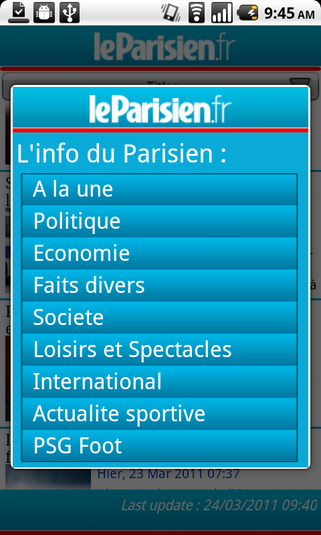 Avec l’application officielle Le Parisien développée spécialement pour Android par Kreactive, vous retrouvez toute l’actualité du moment mais également les informations locales de toute l’Île de France.  Au lancement l’appli vous dirige sur page « à la une » présentant les dernières news mais vous avez également accès à toutes les rubriques du quotidien: actualité internationale, l’économie mais aussi les informations culturelles. L’indispensable rubrique « Faits Divers » qui fait chaque jour son succès est également de la partie.