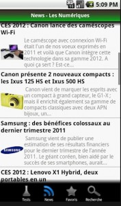 L’application est plutôt bien conçue, la lecture des tests s’opère sans problème (en tout cas plus facilement que sur un navigateur internet mobile). Vous pourrez améliorer la visibilité en utilisant une loupe qui permettra de zoomer sur les articles, le texte profite alors d’une nouvelle mise en page.