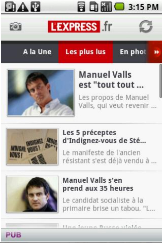 L’application L’Express.fr propose de retrouver toute l’actualité en temps réel du site lexpress.fr. Au programme: l’édito vidéo de Christophe Barbier, des diaporamas de photos et bien entendu de l’info quotidienne selon les catégories thématiques Monde, Economie, High-Tech, etc.