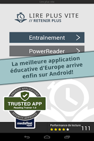 Les personnes testées ont obtenu en 10 jours une augmentation moyenne de leur vitesse de lecture de 143 %. Lire plus vite permet également de partager ses résultats sur Facebook et Twitter. Retrouvez la verison iOS en cliquant ici